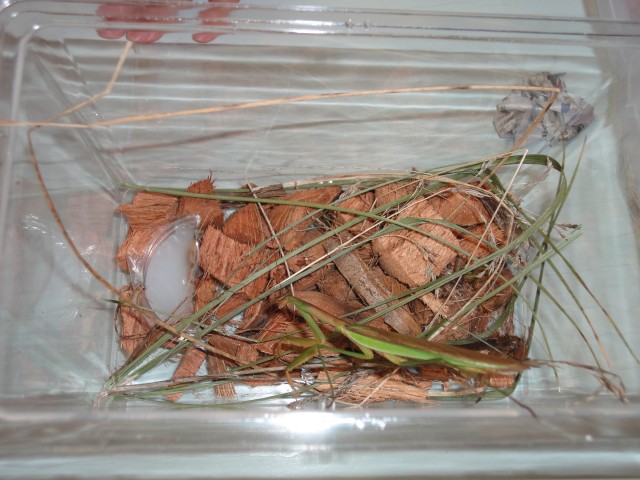 さくらさんは、お部屋でカマキリを飼っています。カマキリの餌はなんと、生きたコオロギなんです。動かないものは食べないんですって。(勉強になります)素早い動きでコオロギをパクリ!カマキリはコオロギを食べないと生きていけないんだと、子どもたちは学んでいました。
