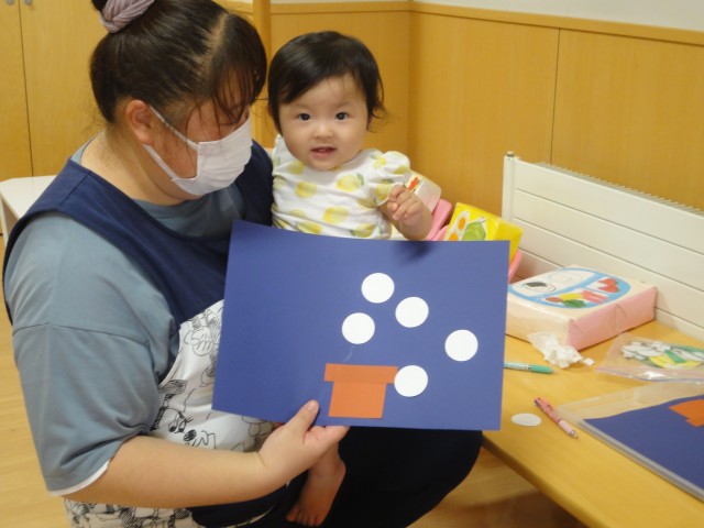 今日は、どんよりとした曇り空。どのクラスも園内で制作をしたりして過ごしていました。つくしさんでは、しばらくお休みをしていたお友だちが、足型を取っていました。なんだか楽しそうで良かったです。つぼみさんも、お月見団子の制作をしていました。自分で考えて貼っていて、すごいなぁと感心しました。